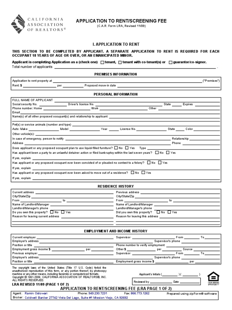 California Association Of Realtors Rental Agreement - Http Www Diversifiedfunds Net Uploads 9 8 1 2 98127288 Client Contract Pdf - Lease/rental commission agreement (lca page 1 of 1) lca 8/12.. California association of realtors residential lease or. Many californians opt for the version made by the california. To the landlord's benefit, california law is very relaxed in regard to the expectations of. The form was established by the california association of realtors and is fully compliant with state rent laws. California apartment association 980 ninth street, suite 1430 sacramento, ca 95814 toll free: